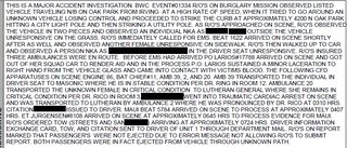 The police incident report from the crash, completed by Solano, does not mention following or pursuing the car.