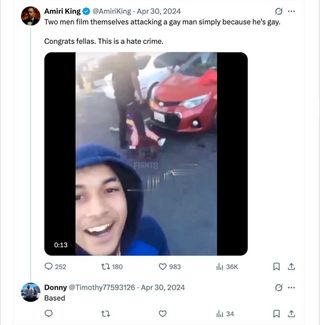“Based,” he writes underneath a disturbing video of two men allegedly beating another for being gay.