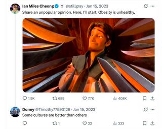 He also affirms America would improve if women lost the the right to vote. And in a reply to right-wing provocateur Ian Miles Cheong, he shares his “unpopular opinion” that some cultures are better than others: