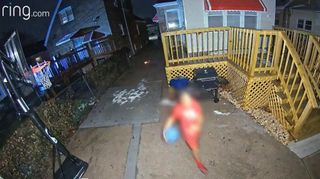 Video obtained from security cameras around the residence shows a child with a ball lighting fireworks in the driveway.